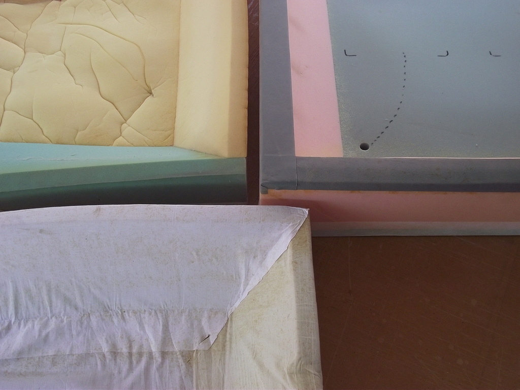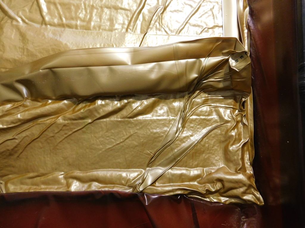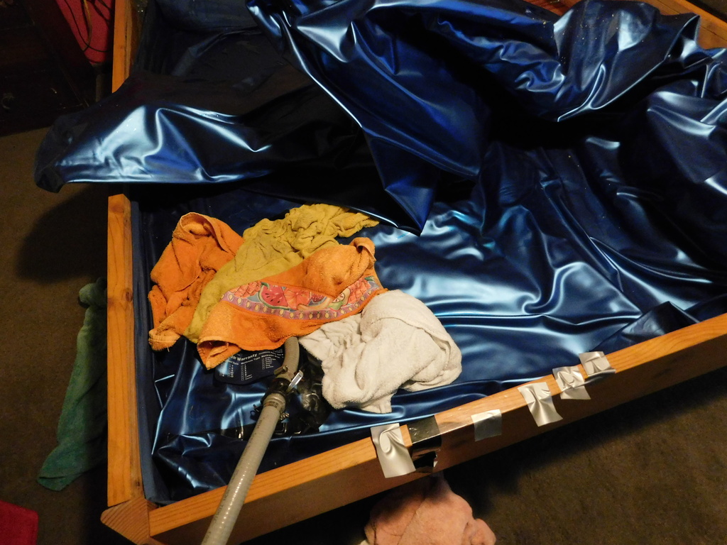 Image of Queen timber frame waterbed with intact Dacron layer system after 14 years.