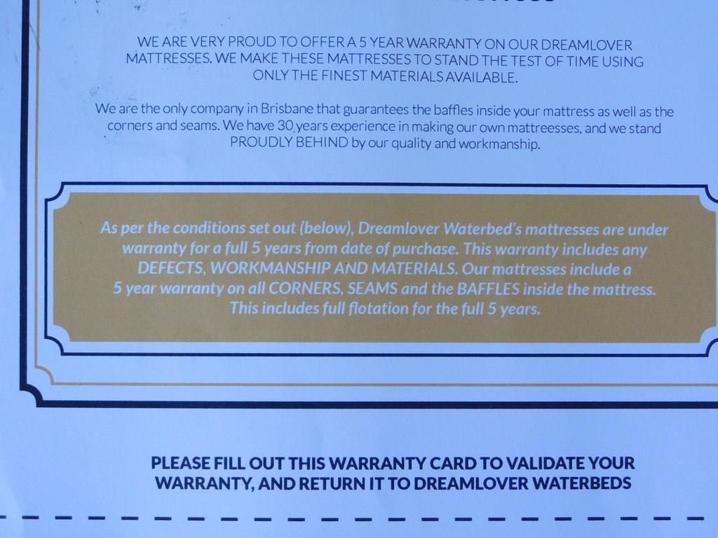 If any one in who has purchased on line a particular brand of waterbed bladder claiming 5yr warranty Australia